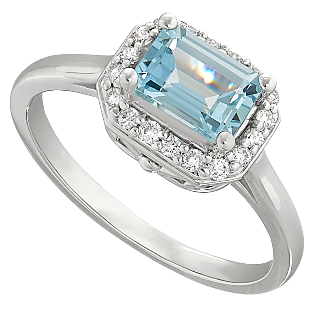 Antique Cushion Blue Topaz and Diamond Ring Small