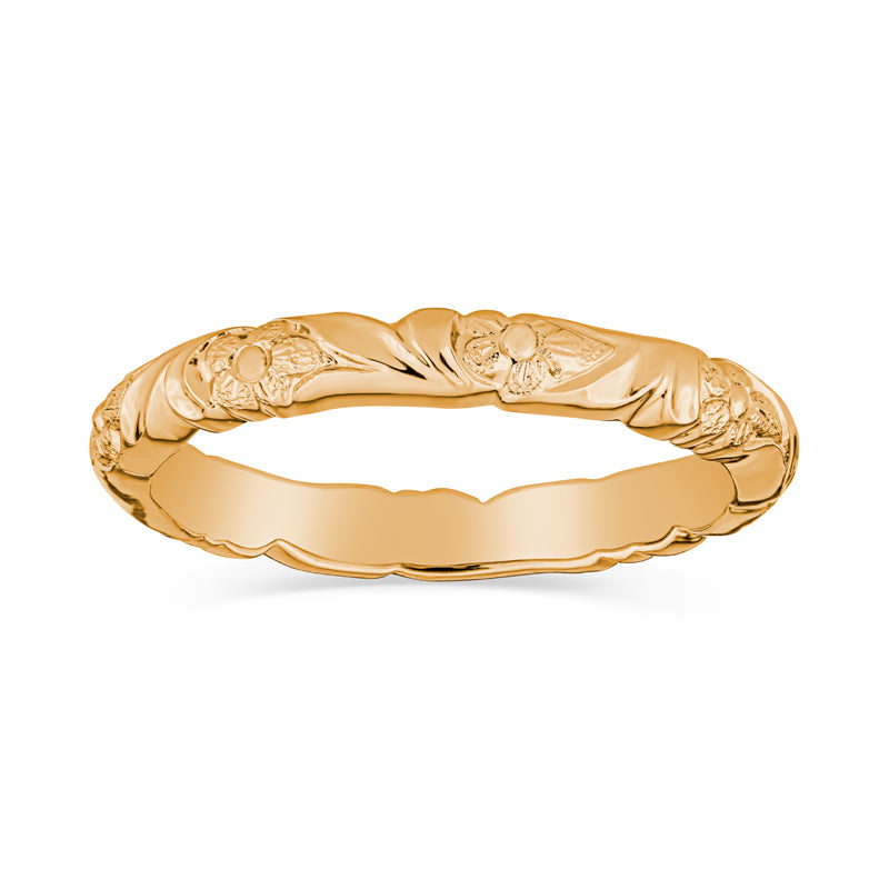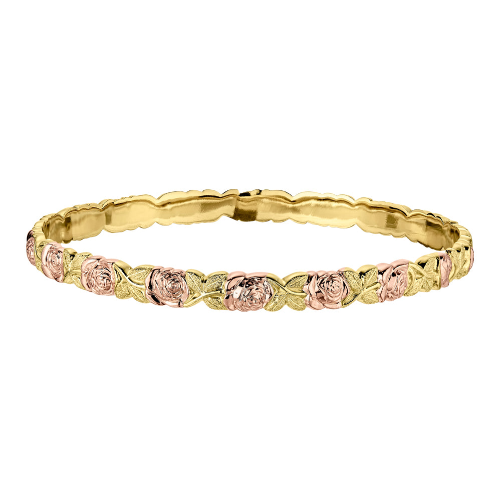 Jabel's Pink and Green Gold Wide Stackable Floral Bangle Bracelet (5MM)