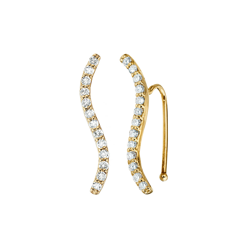 Damiamond Curved Earring Climbers 14K Yellow Gold