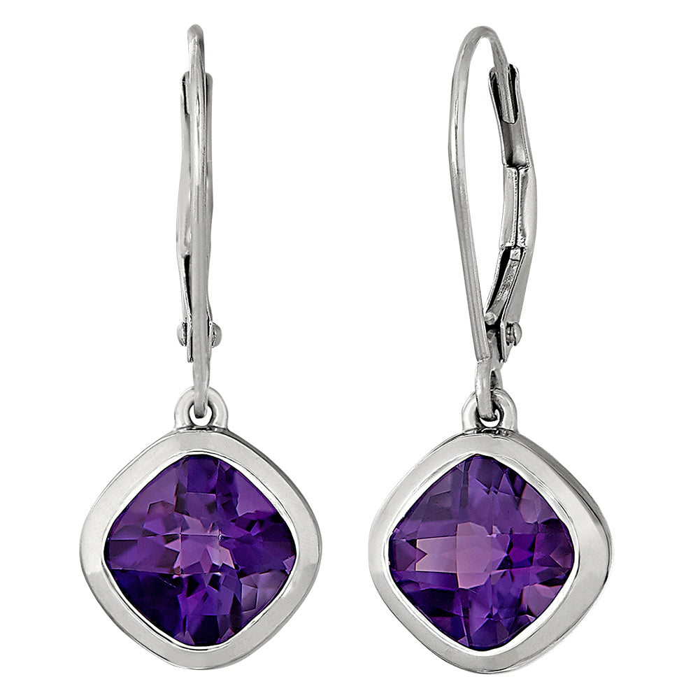 Dangle Cushion Amethsyt Gold Earrings - Petite