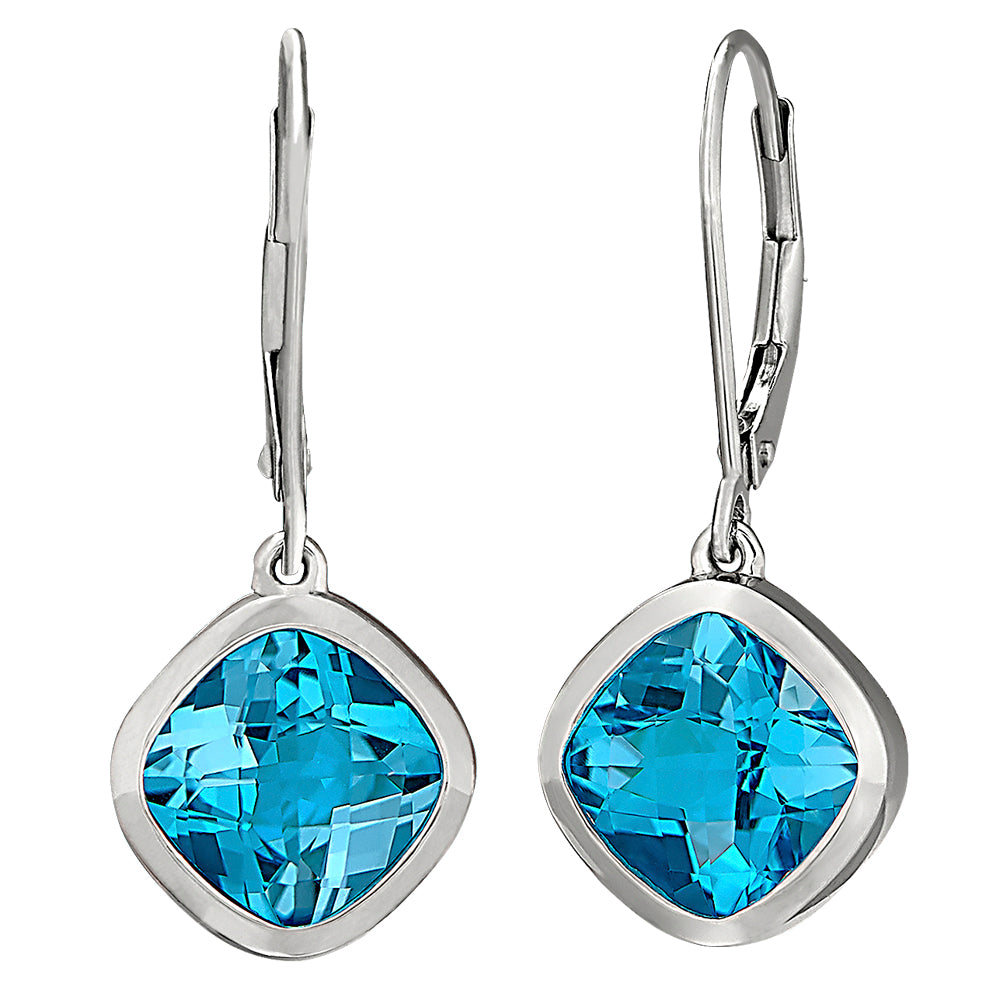 Diamond and Cushion Checkerboard Gemstone Dangle Earrings