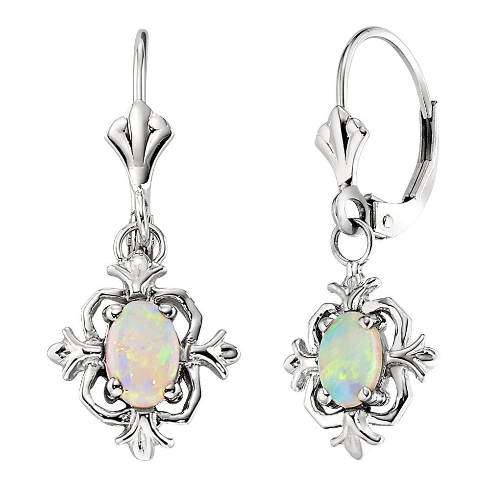 Fleur De Lis Vintage Style Opal Earrings (Dangle)