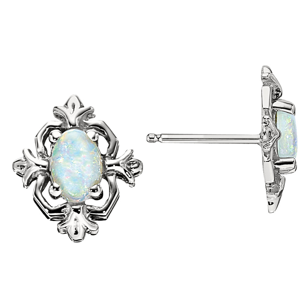 Fleur De Lis Opal Earrings with Vintage Details (Post)
