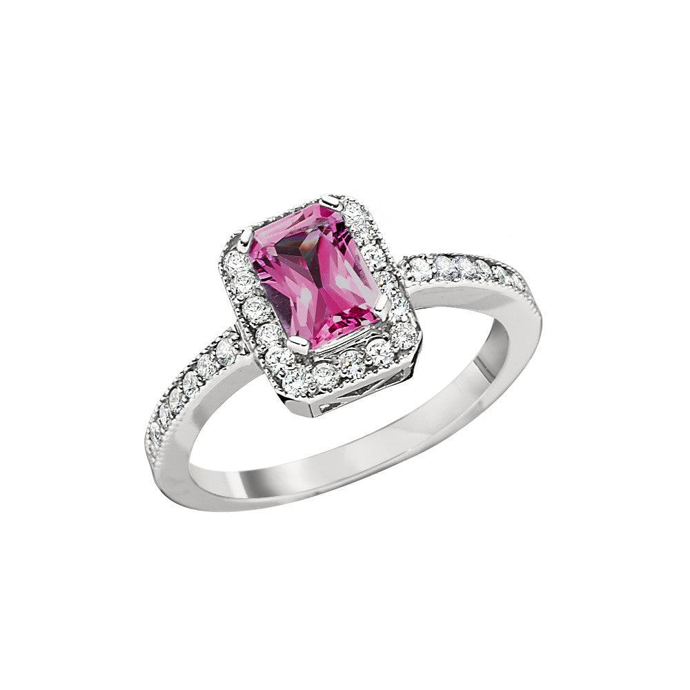 Pink Tourmaline and Diamond Halo Ring