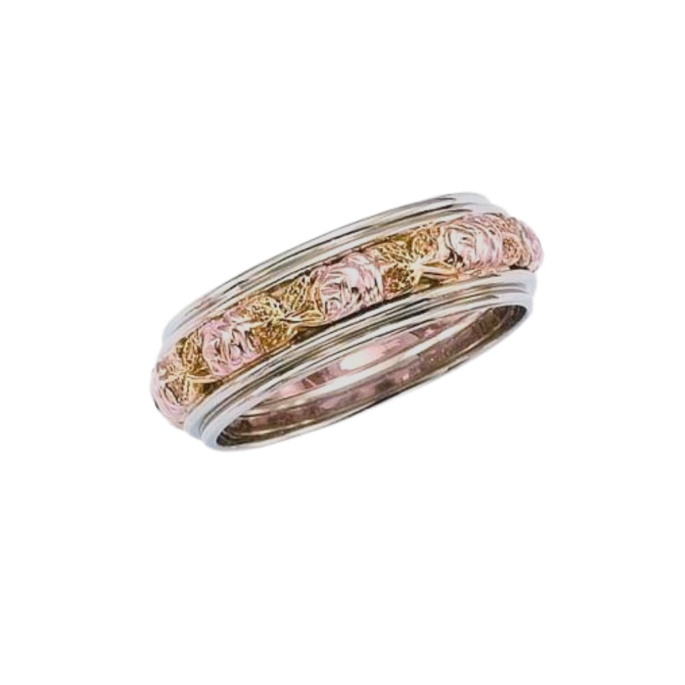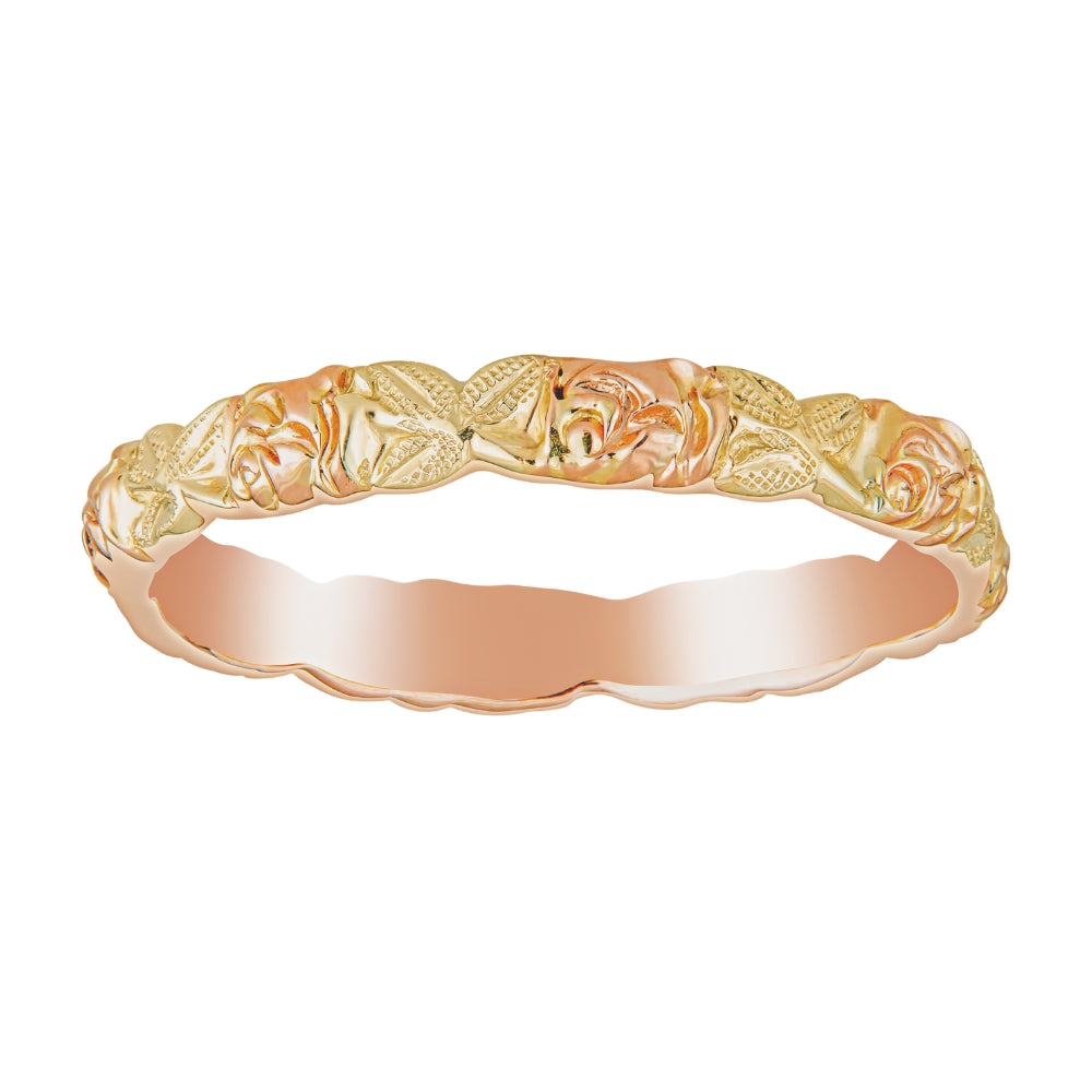 Rose and Leaf Gold Wedding Band - Petite Version