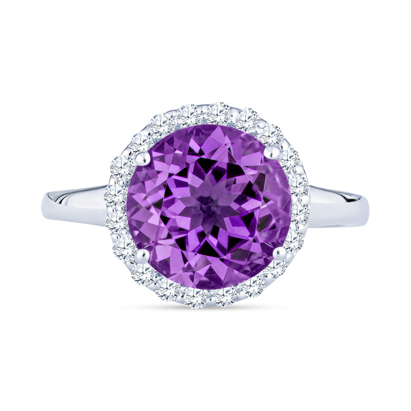 Round Gemstone and Diamond Halo Ring