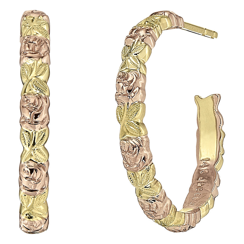 Rose Flower Hoops in 14K Pink and Green Gold Grand
