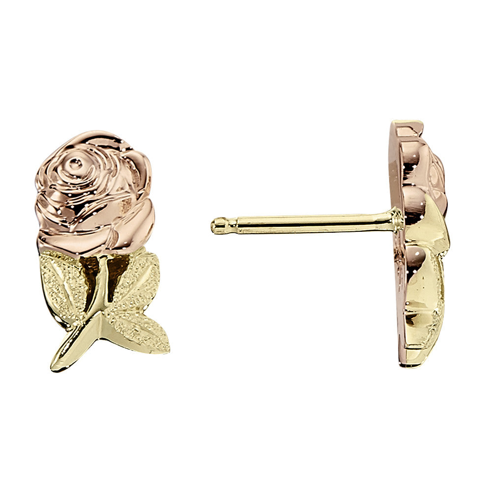 Rose Flower Earrings in 14K Pink and Green Gold