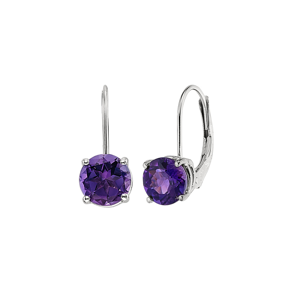 Simple Round Amethyst Lever Back Dangle Earrings