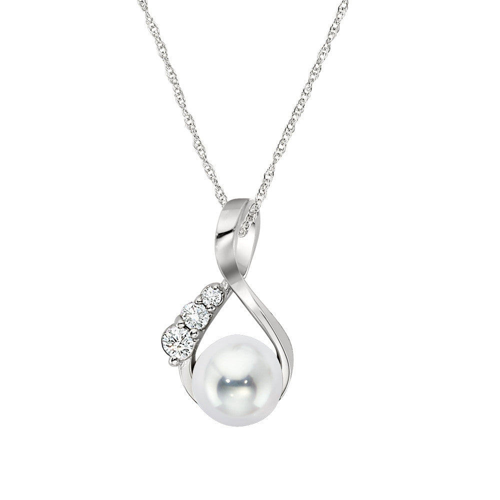 Classic Cultured Pearl and Three Stone Diamond Pendant