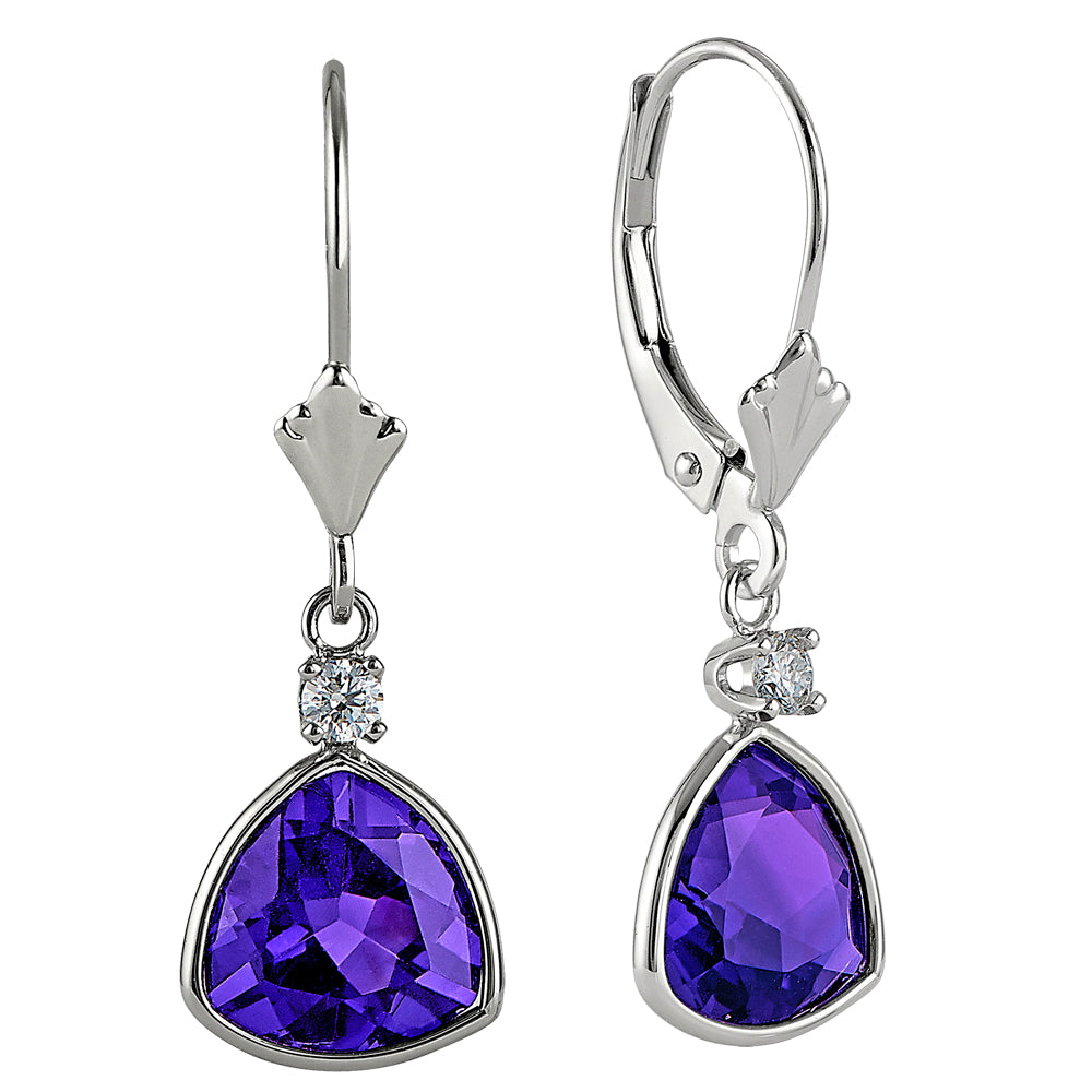 Bold Bezel Dangle Earrings with Trillion Amethyst