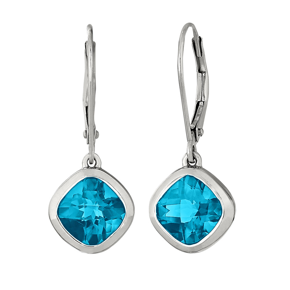 Dangle Cushion Blue Topaz Earrings - Petite