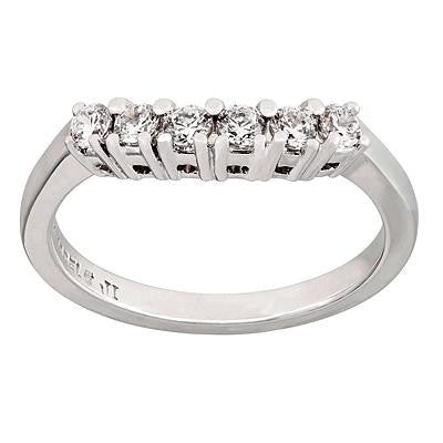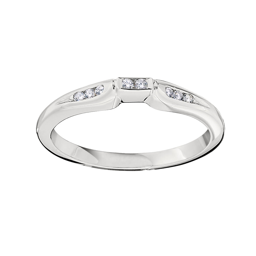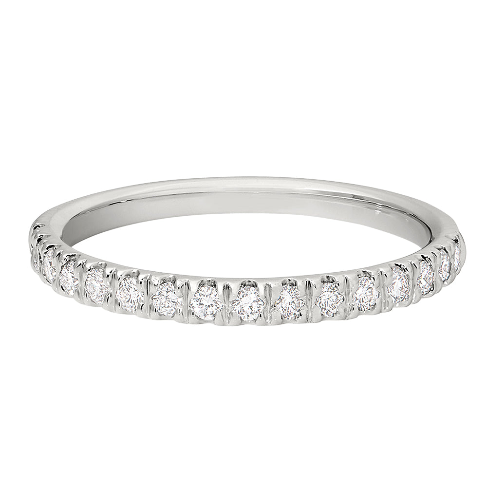 When it comes to diamond wedding bands there are two main categories - straight and curved wedding bands. Curved wedding bands follow the curvature created by an engagement ring’s center stone setting; however, the curved lines look awkward when worn without the engagement ring. Straight bands do not sit flush against all engagement rings, but look great when worn without the engagement ring. Also, straight bands can be added to a collection of stackable rings for a pop of sparkle. To explore your options, reach out to our personal online jeweler representatives.