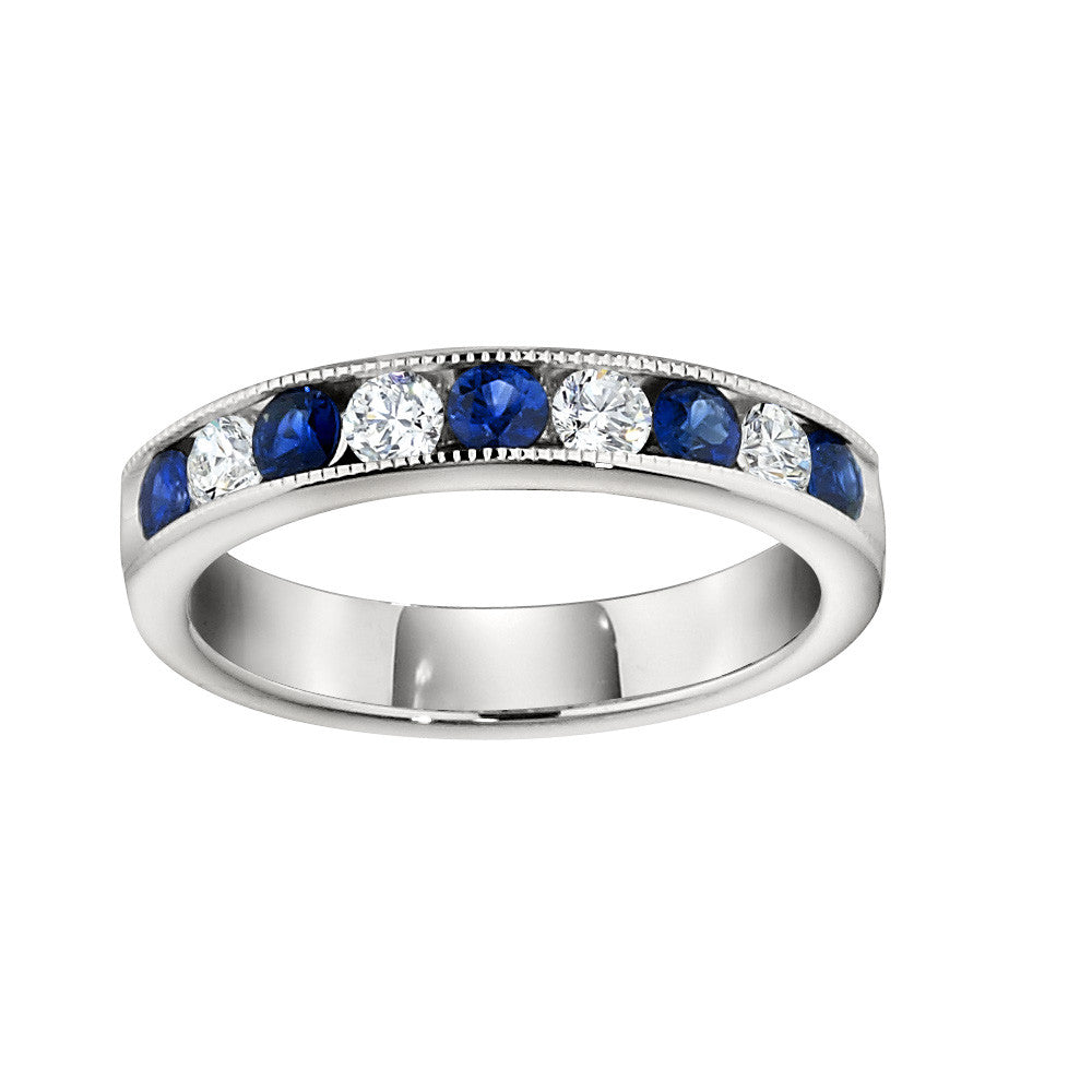 Channel Sapphire and Diamond Wedding Bands - Milgrained