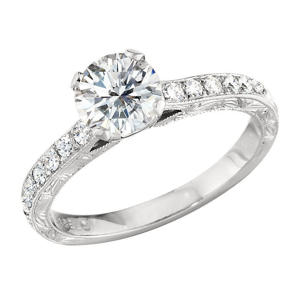 Vintage Style Hand Engraved Diamond Band Engagement Rings