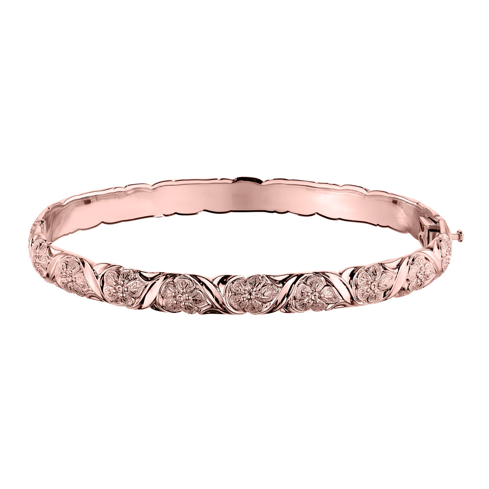 Jabel's Pink and Green Gold Wide Stackable Floral Bangle Bracelet (2.5MM)
