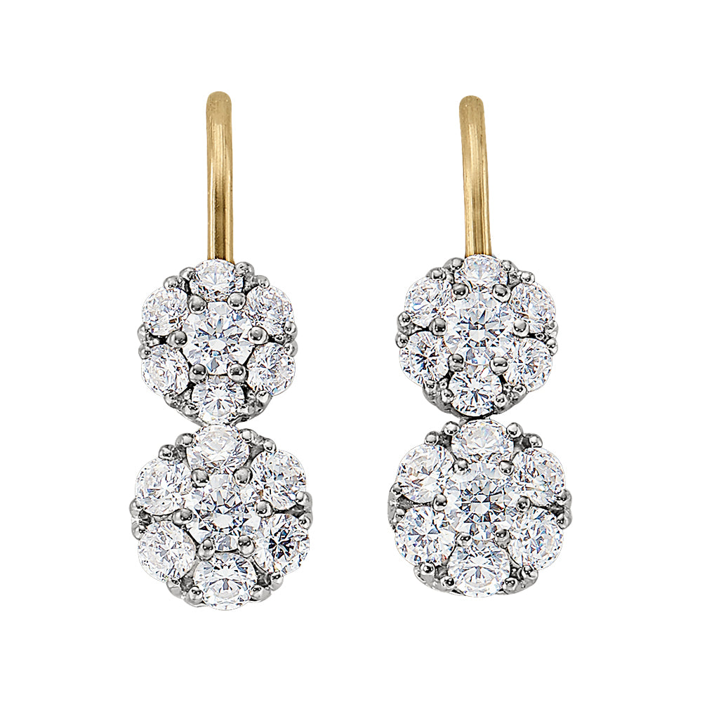 Jabel Double Diamond Cluster Dangle Earrings 1.16CTW