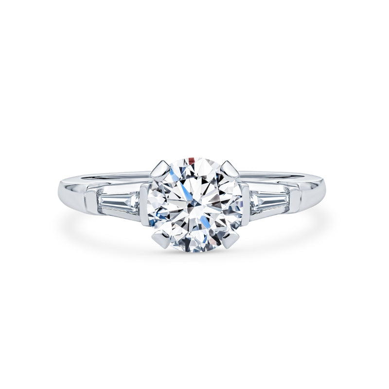 Three Stone Engagement Ring with Tapered Baguette