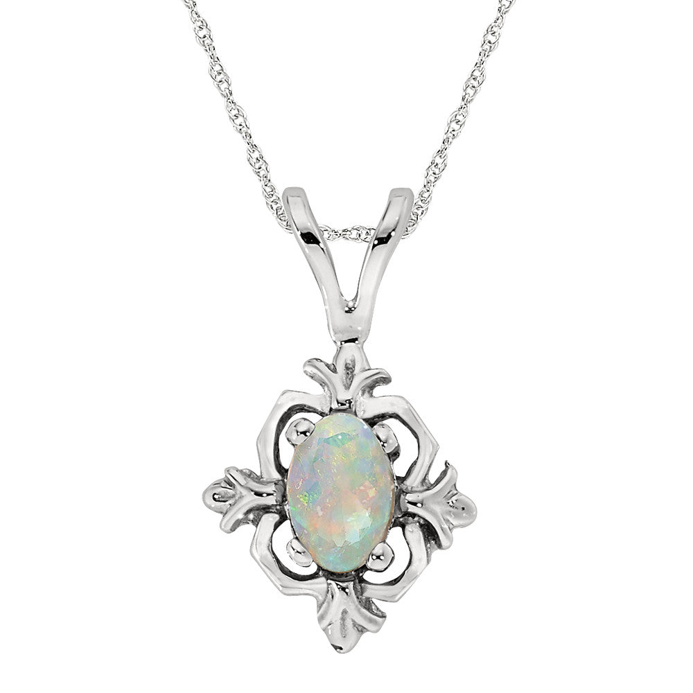 Vintage Style Fleur De Lis Onyx and Opal Pendant