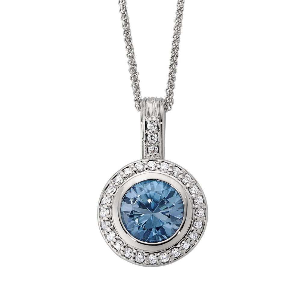 Vintage Style Blue Zircon Diamond Halo Pendant