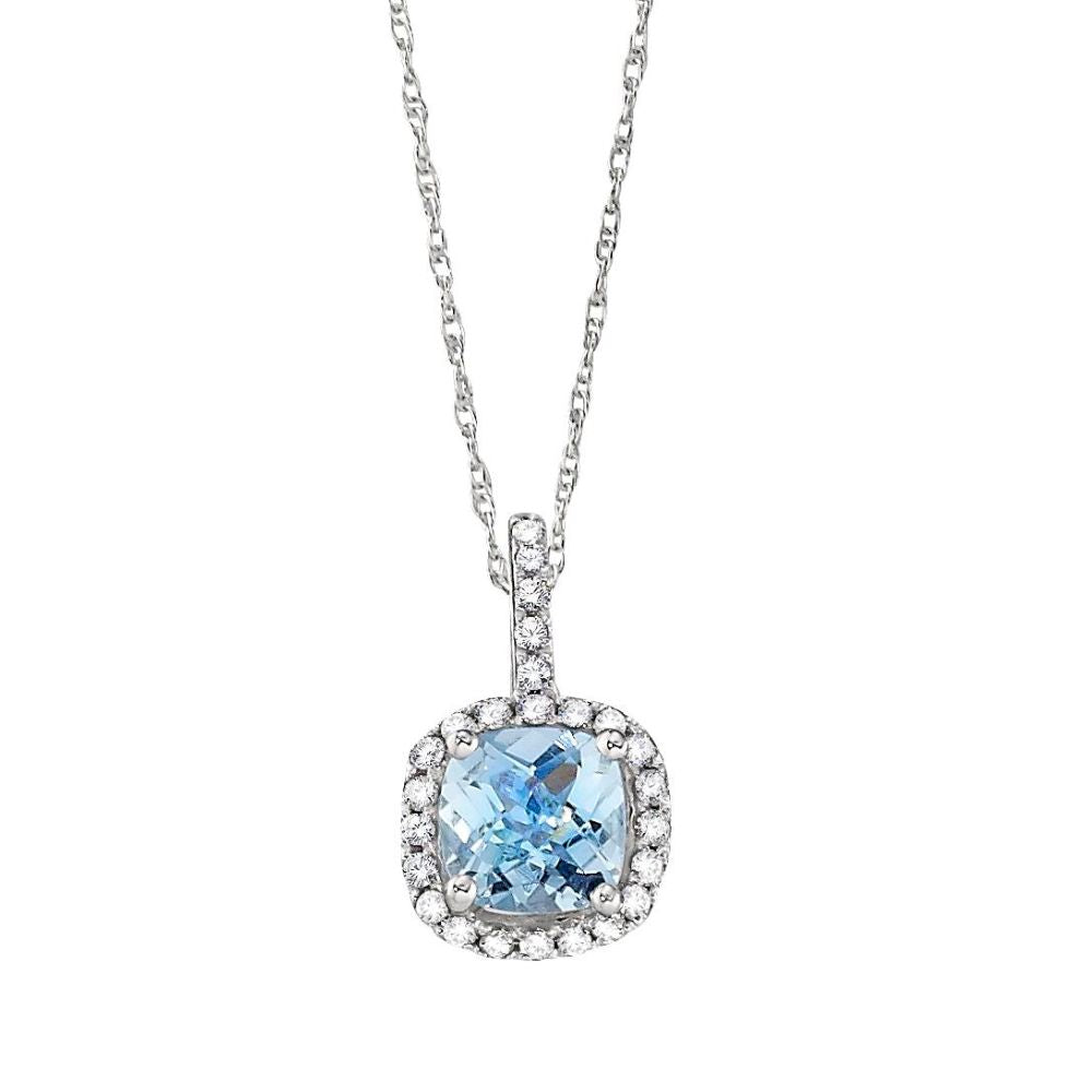 Cushion Checkerboard Aquamarine Pendant 7MM