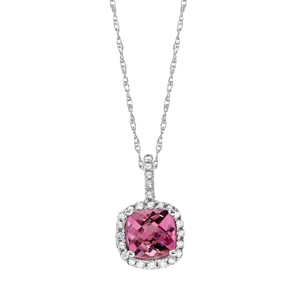 Cushion Halo Pink Tourmaline and Diamond Pendant