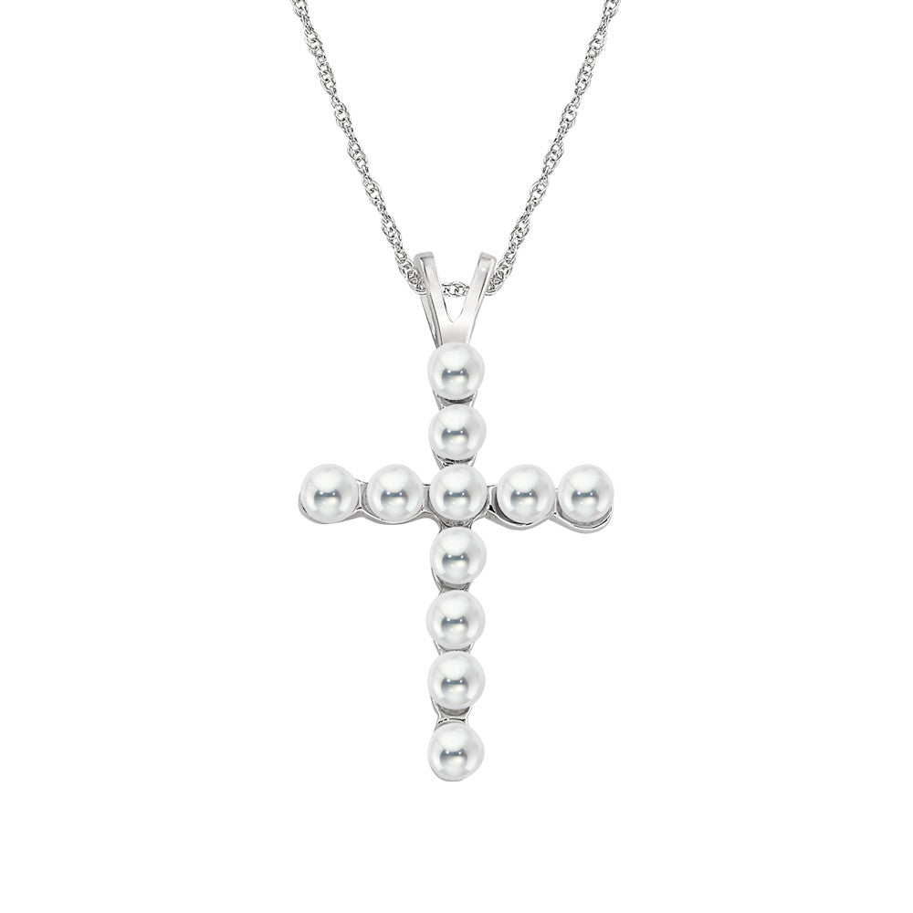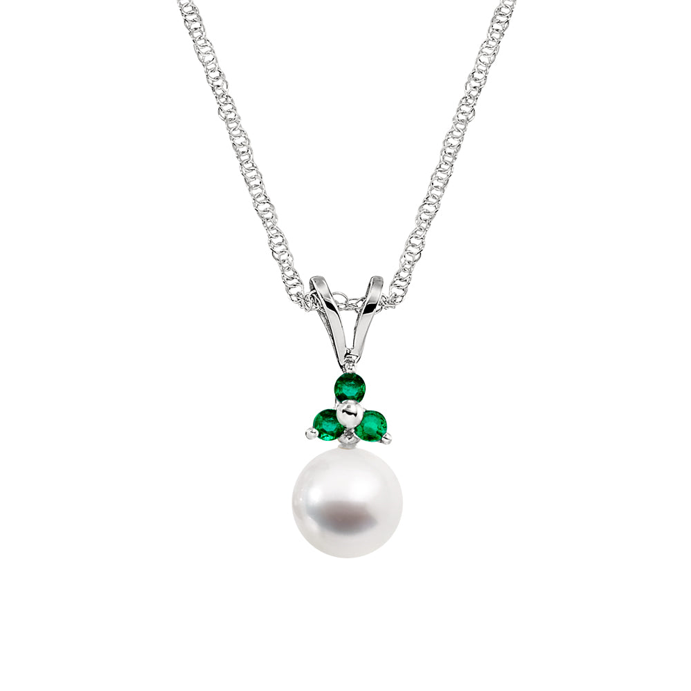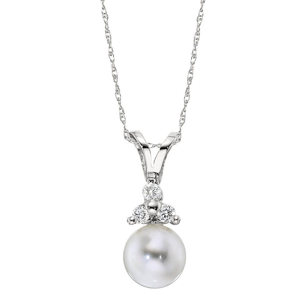 Classic Cultured Pearl and Three Stone Diamond Pendant