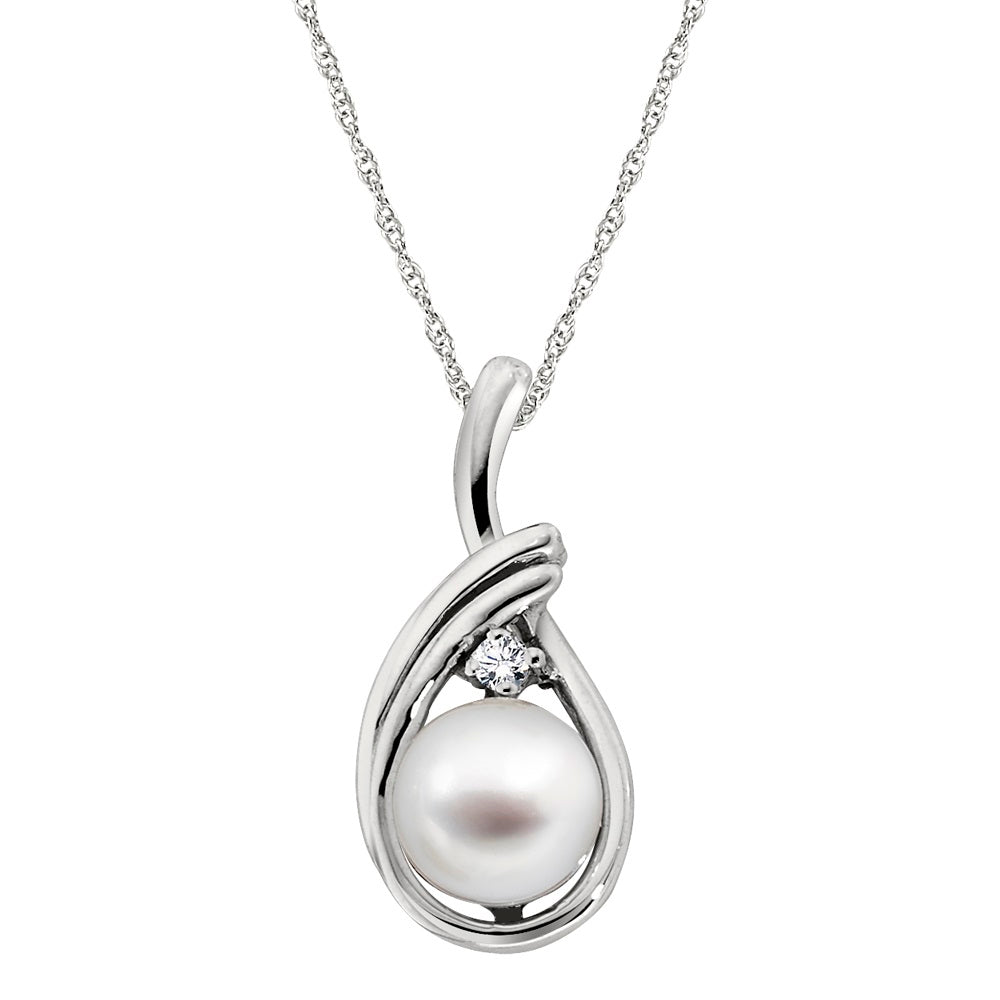 Curvy Swirl Diamond and Pearl Necklace in 14K White Gold