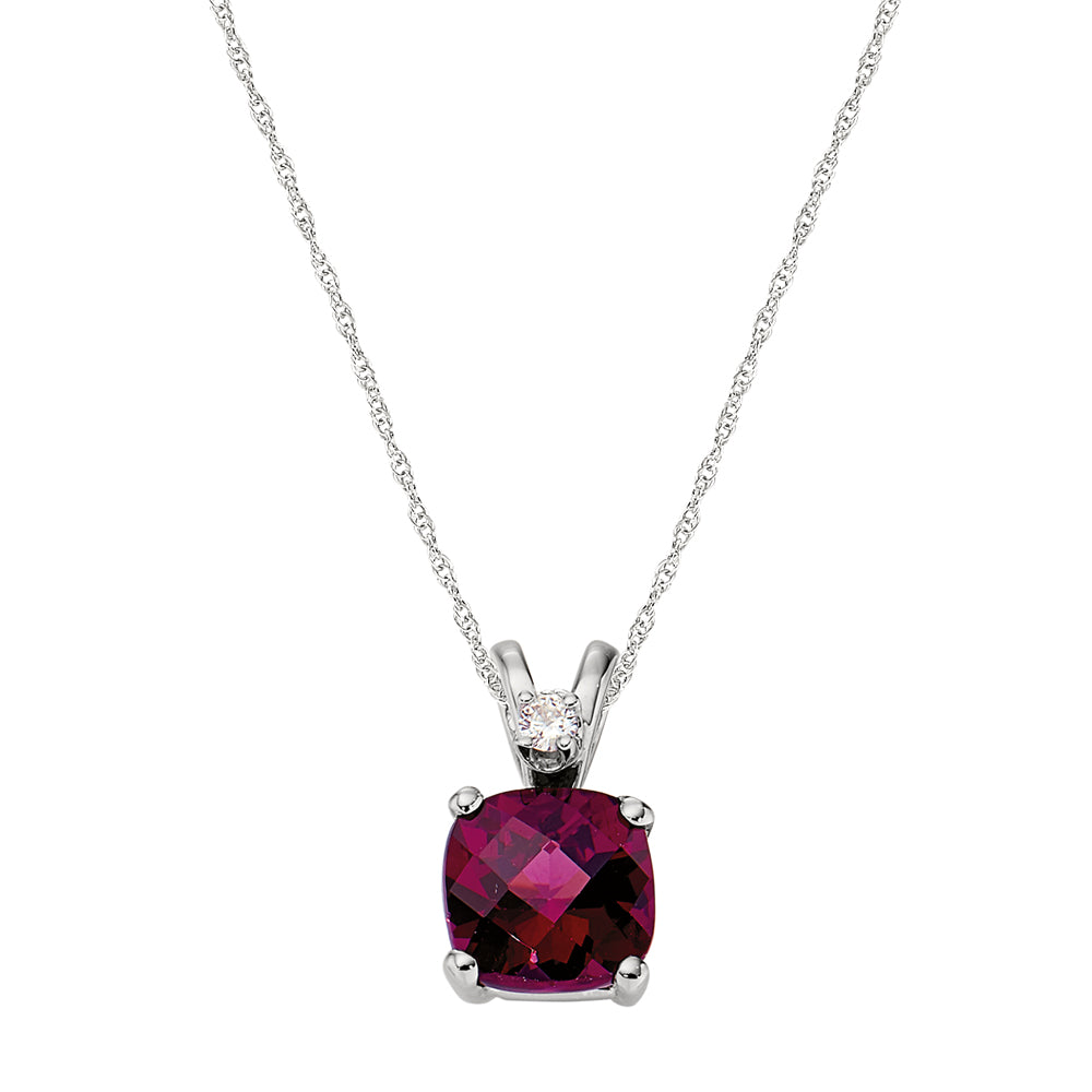 Cushion Checkerboard Rhodolite Pendant 6MM