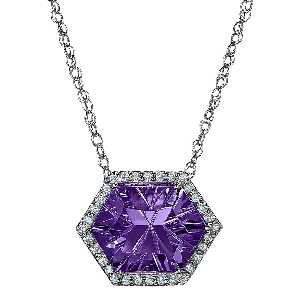Halo Concave Hexagon Amethyst and Diamond Necklace Worn Two Ways