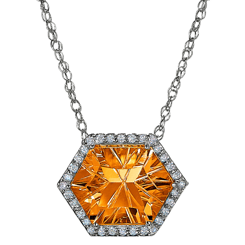 Halo Concave Hexagon Citrine and Diamond Necklace Worn Two Ways