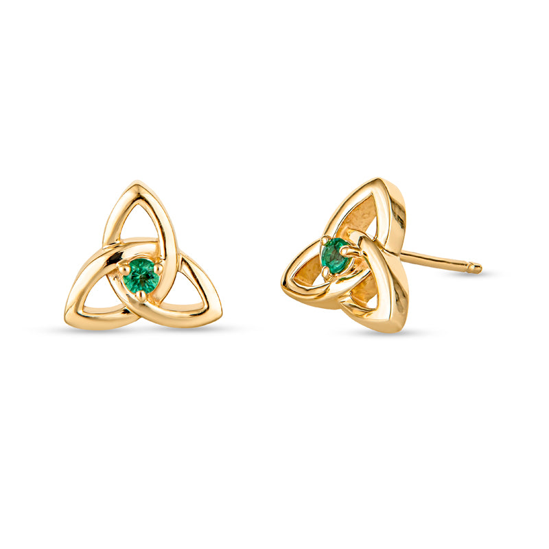 Triquetra Trinity Knot Gemstone Earrings Gold Emerald