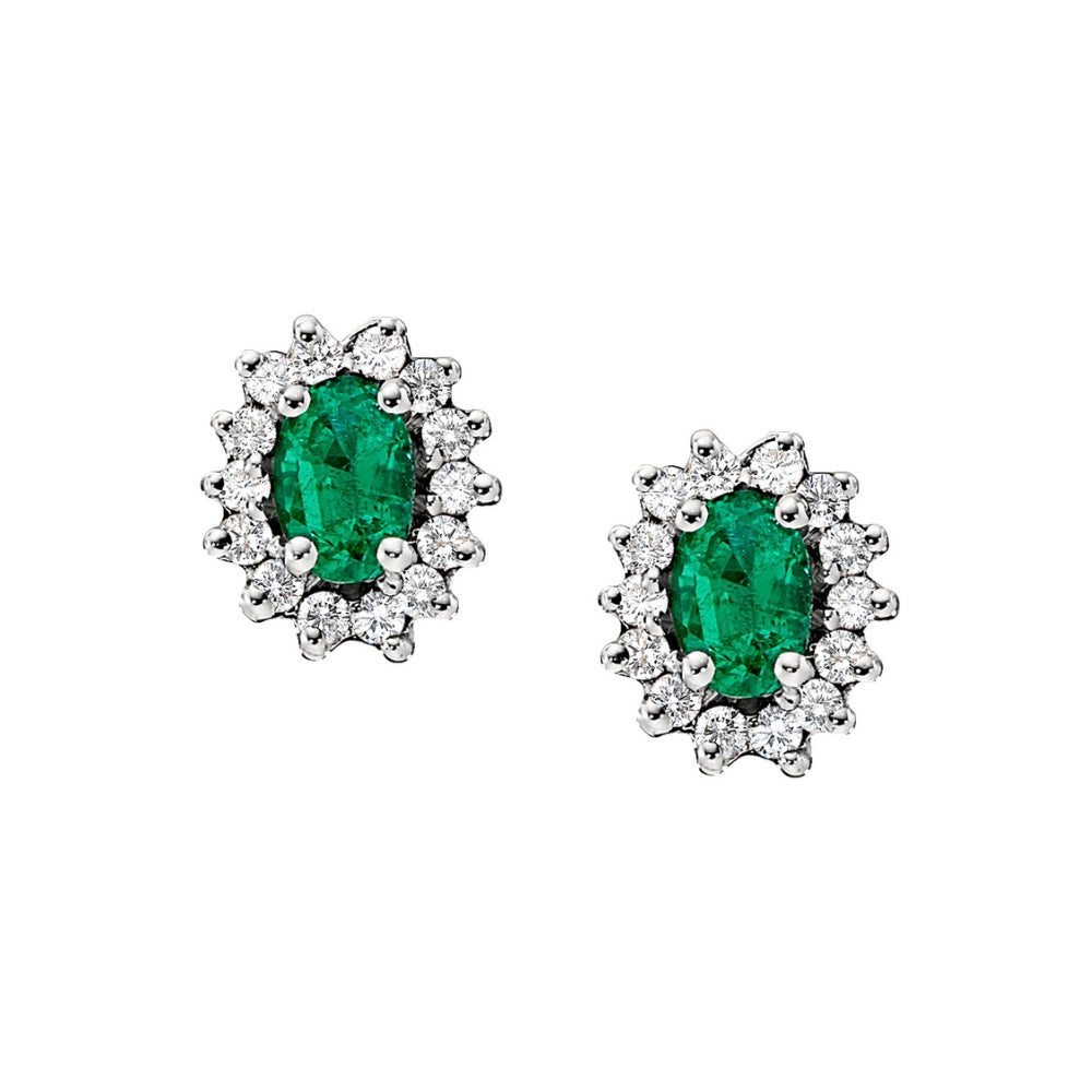 Emerald and Diamond 'Princess Di' Style Halo Earrings