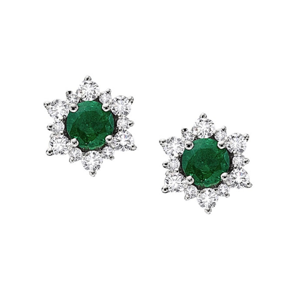 Classic Emerald and Gold Diamond Hoop Earrings Mid-Size