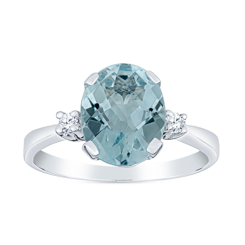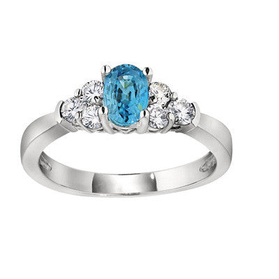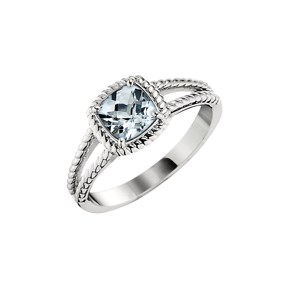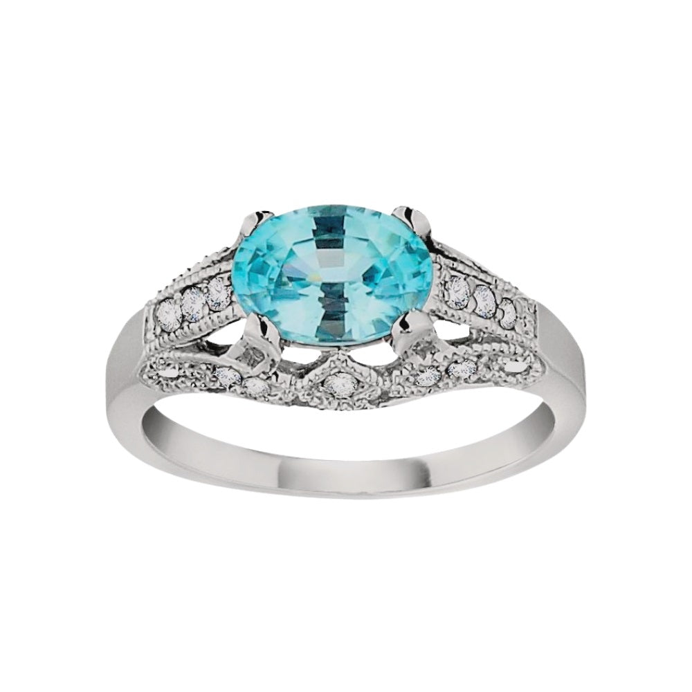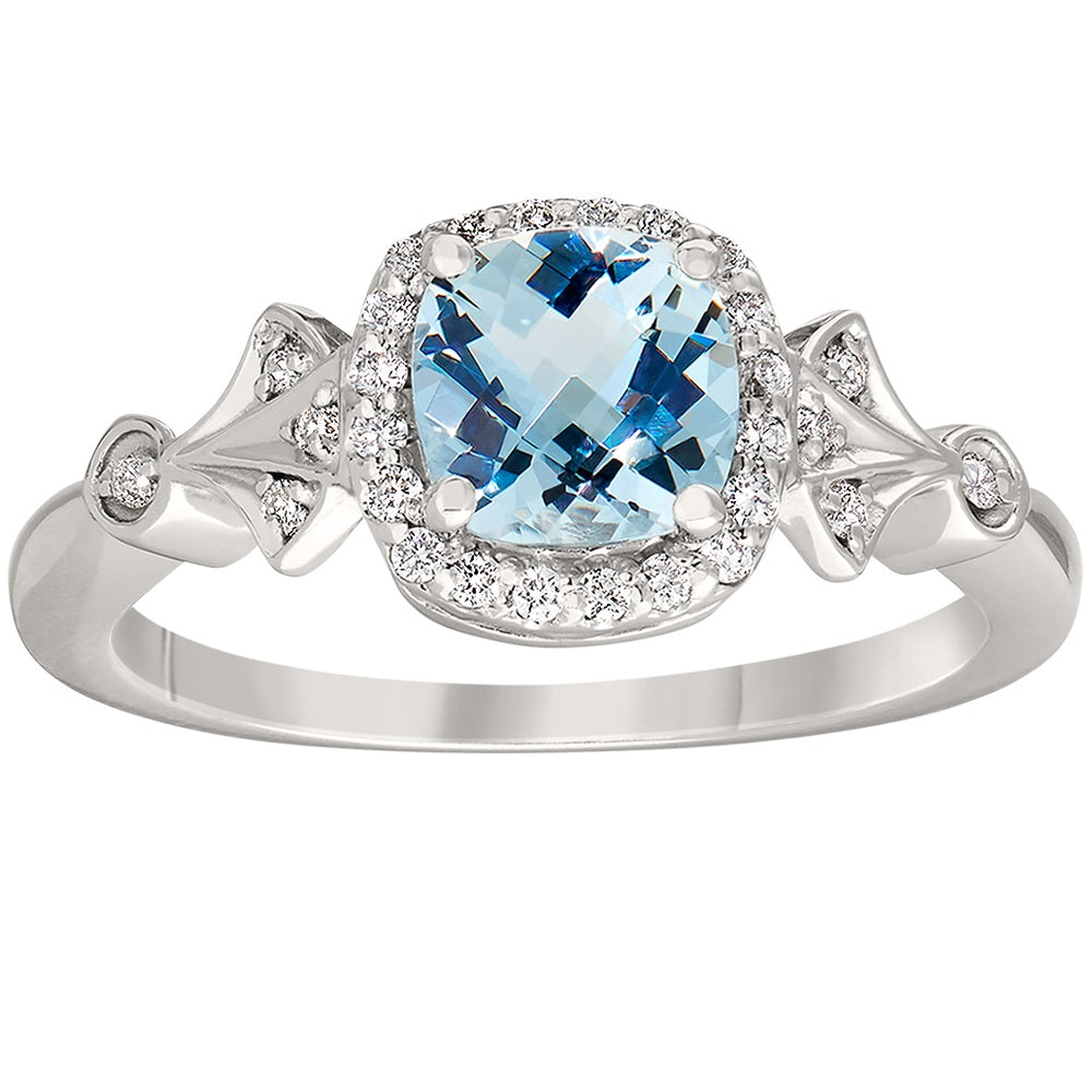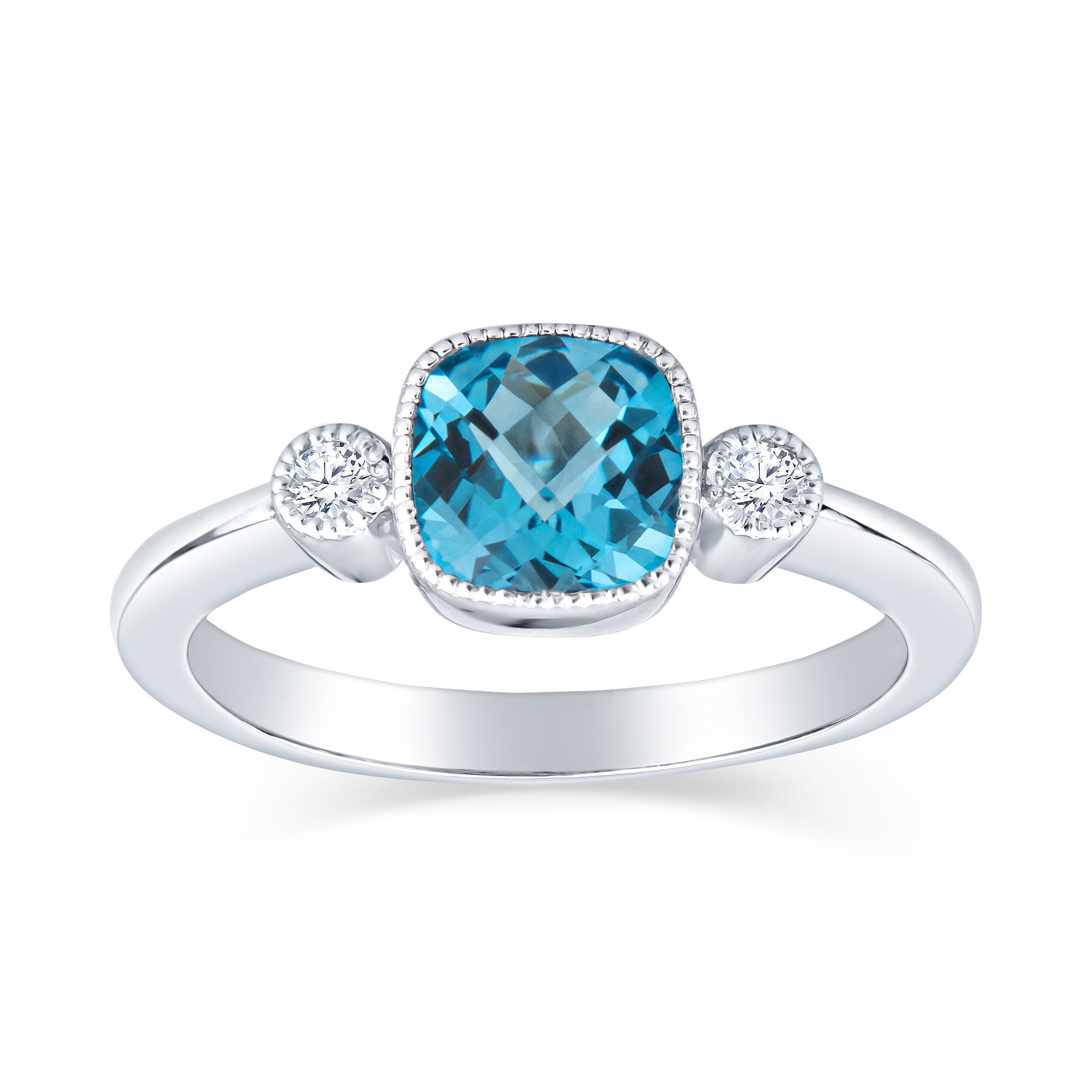 Antique Cushion Blue Topaz and Diamond Ring Small