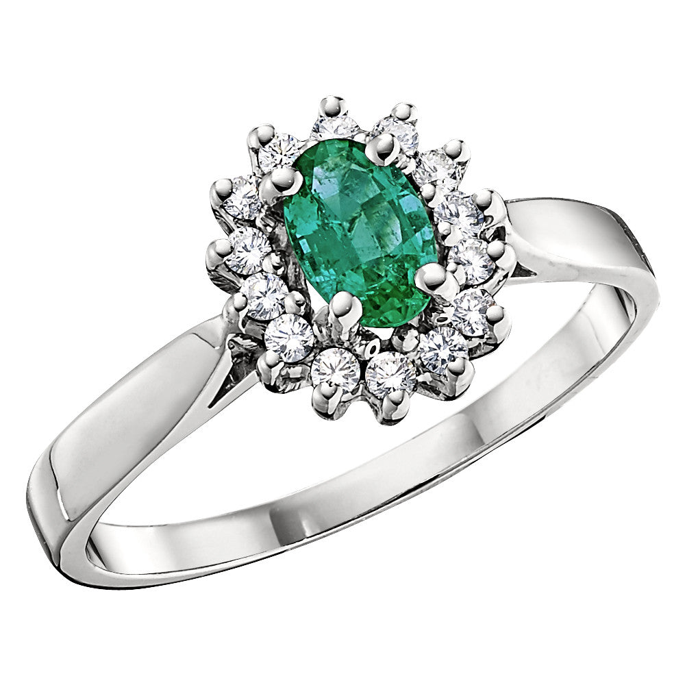 'Princess Di' Style Emerald and Diamond Halo Ring