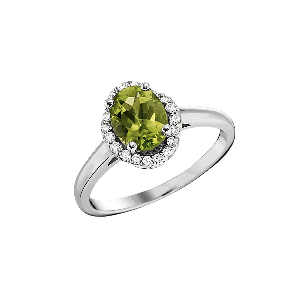 Halo Peridot and Diamond Ring Small