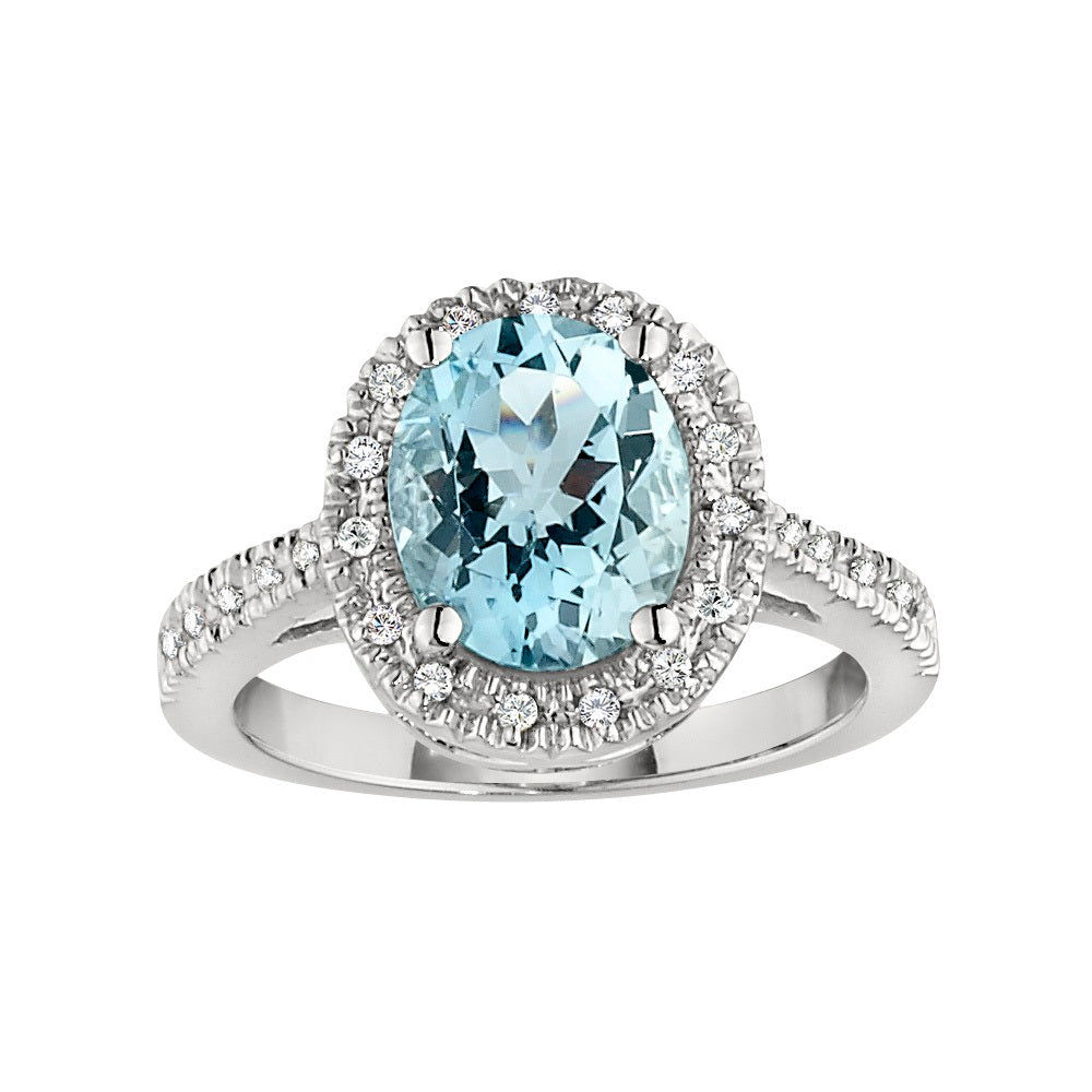 Grand Halo Aquamarine and Diamond Ring