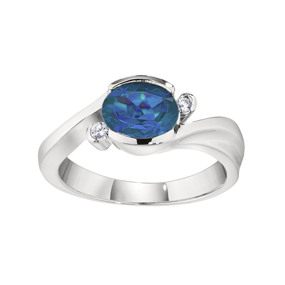 Modern Bypass Blue Topaz and Diamond Ring