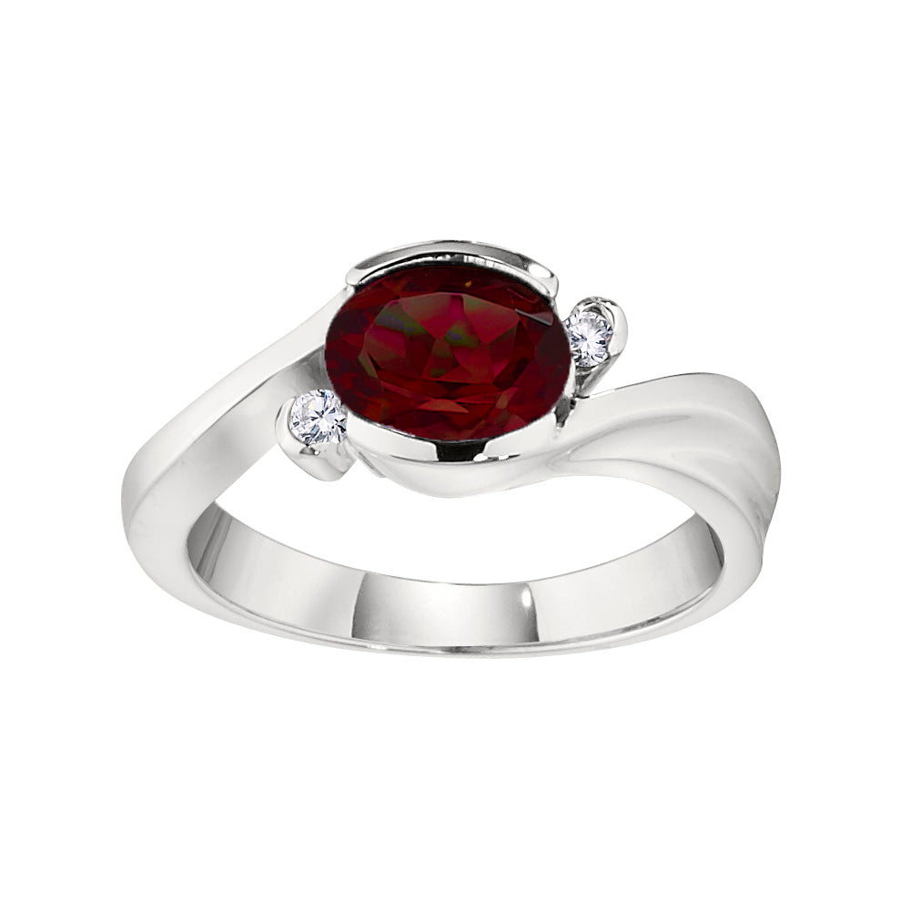 Modern Bypass Garnet and Diamond Ring