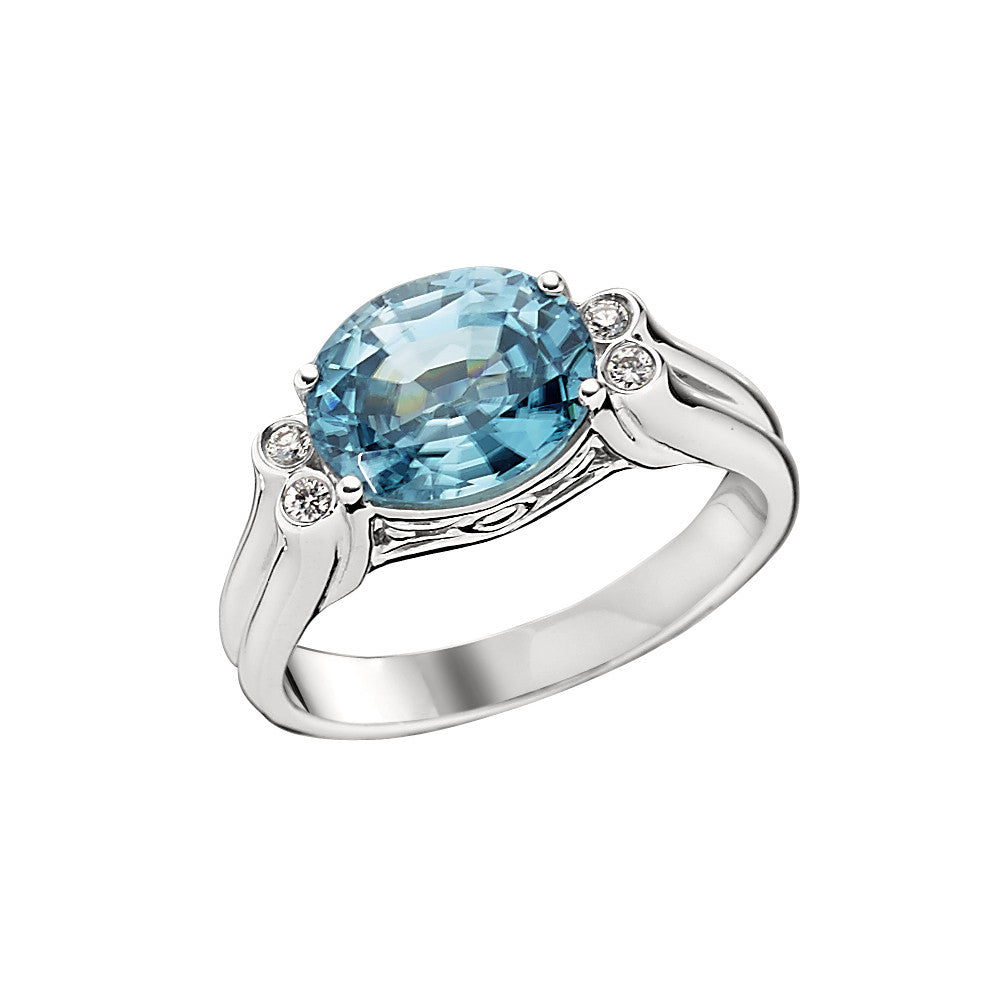 Modern Blue Zircon and Diamond Ring