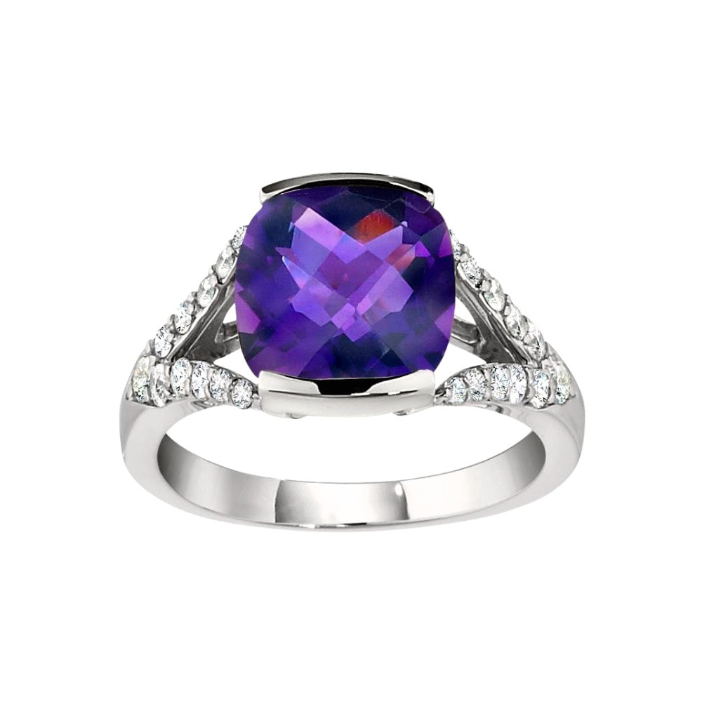 Modern Amethyst and Diamond Ring
