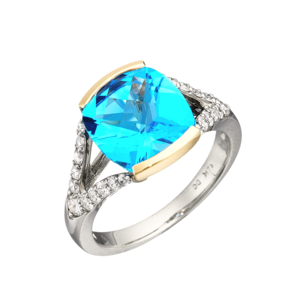 Modern Blue Topaz And Diamond Ring