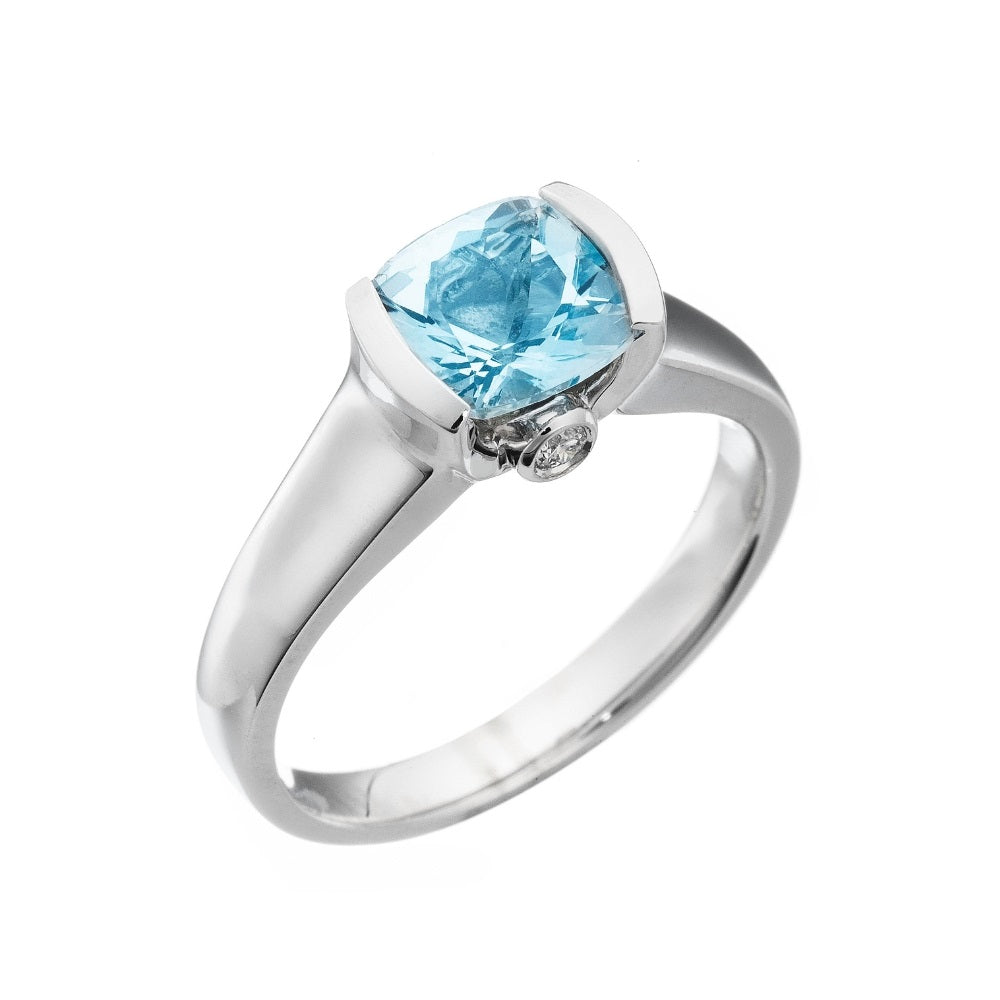 Modern Aquamarine and Diamond Ring