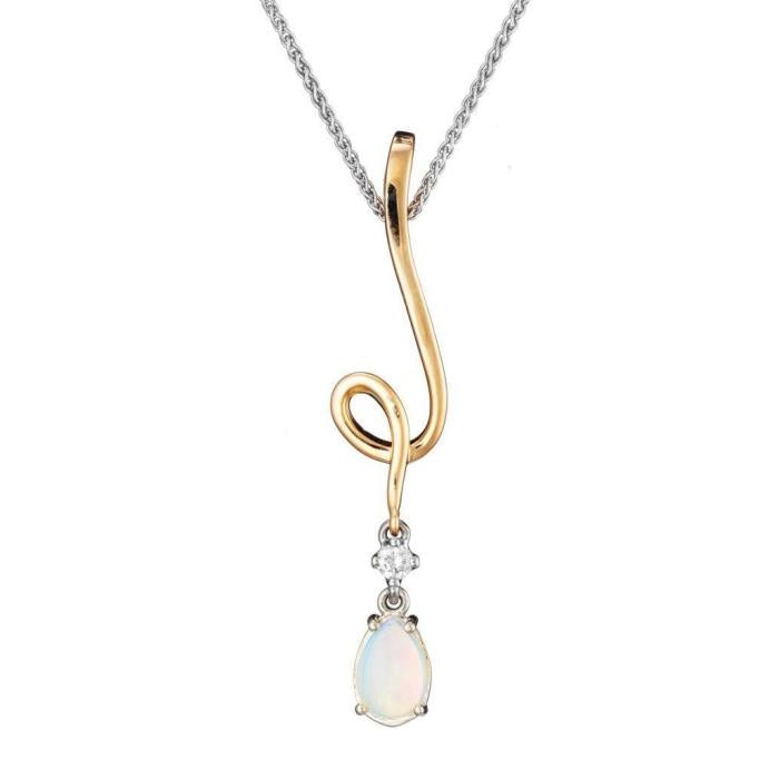 A true lover of gemstones looks past the ‘grandmother’ cliche of opal and sees the true depth and beauty of this unique gemstone. The mineral name of opal is Hydrated Silica. It is the stone .1 micron silica that produces violet flashes and its .2 micron silica that flashes red. Silica spheres between .1 and .2 produce the other color flashes you see. Experience opals full play-of-color with our opal pendant collection, offered in 14K gold.