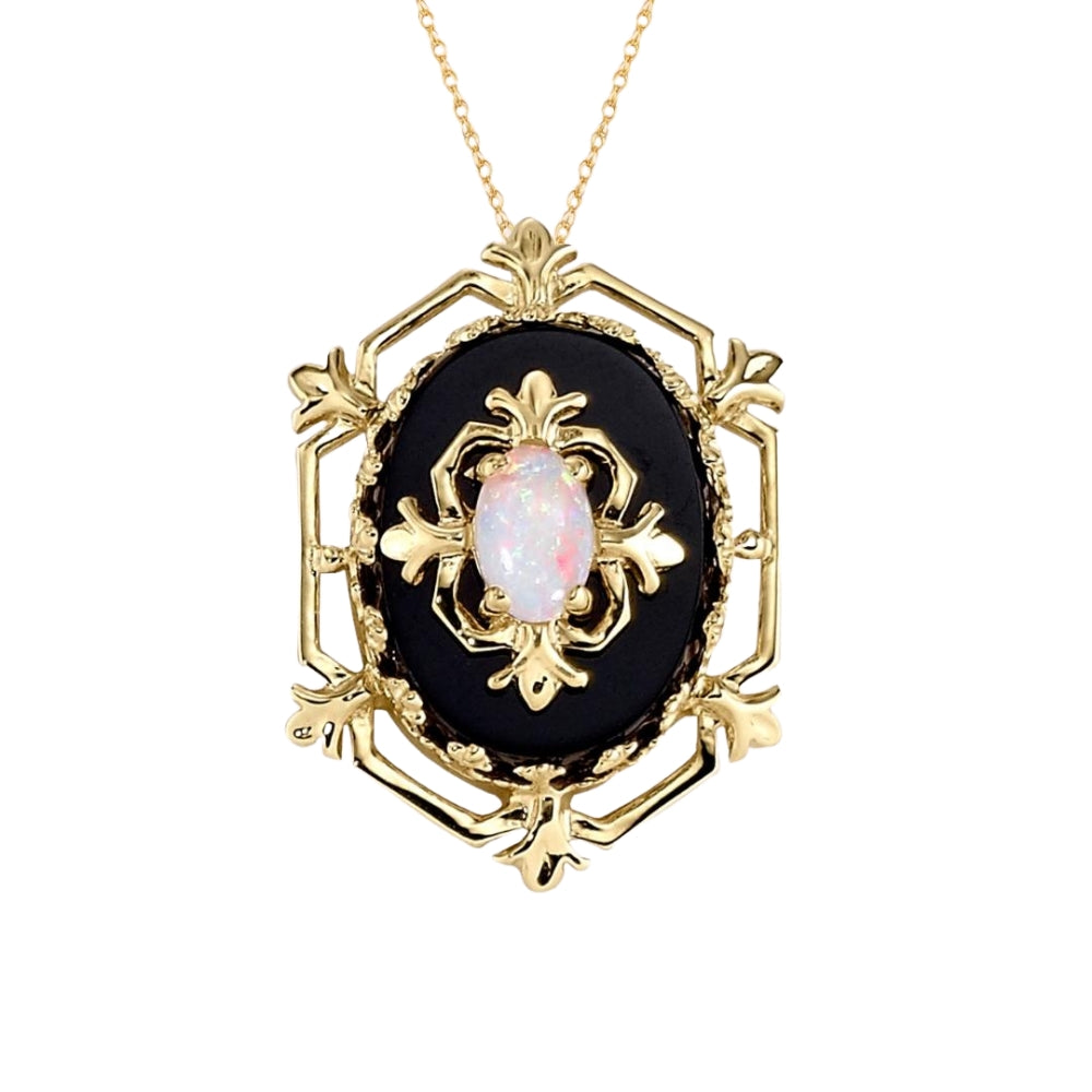 Vintage Style Fleur De Lis Onyx and Opal Pendant