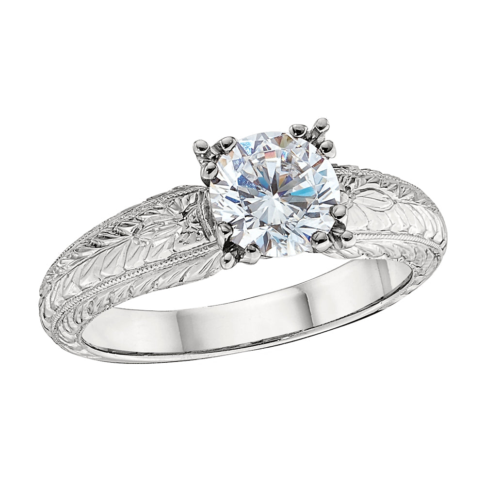 Vintage Style Hand Engraved Solitaire Engagement Rings
