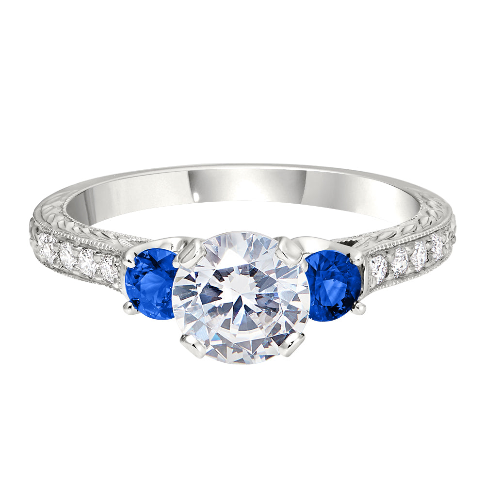 Vintage Style Hand Engraved Sappphire Engagement Rings
