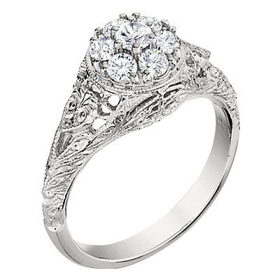 Vintage Style Diamond Spoke Halo Engagement Rings