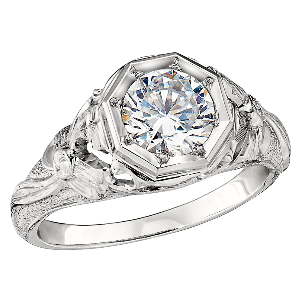 Vintage Style Hand Engraved Engagement Rings with Fishtail Setting